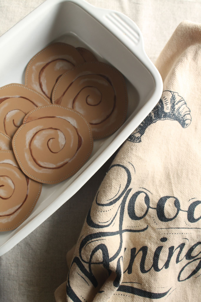 Dessous de verre "Cinnamon Rolls" cuir de veau cappuccino
